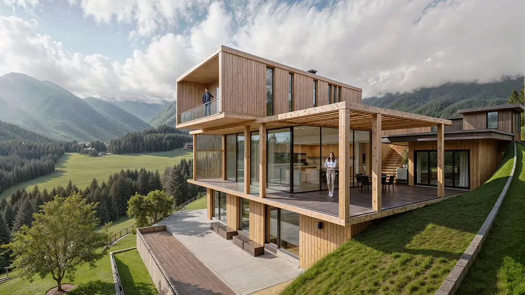 Visual studies across different moods, materials, and site contexts. Same house, different worlds.