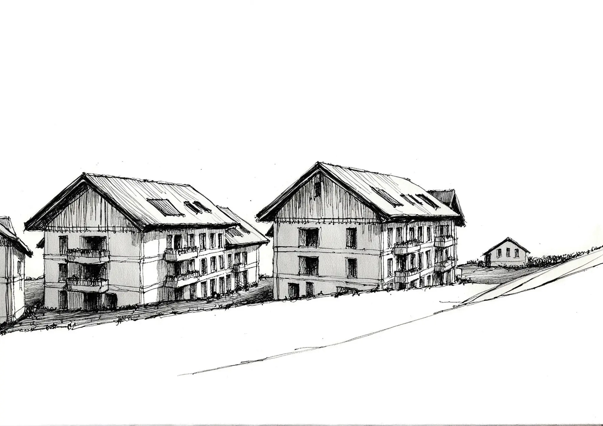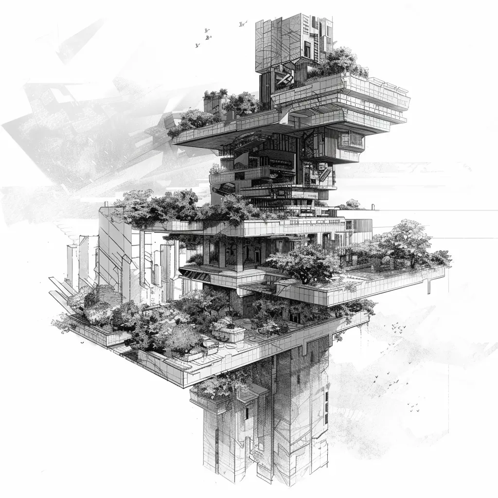 From a simple BIM export, we created a series of visual styles — from loose hand-drawn lines to shaded sketches and colored illustrations.Each version serves a different phase of the project: early concepts, design development, or sales.These styles aren’t just aesthetic — they help tell the story behind the architecture. And when needed, they can evolve into fully rendered scenes or animated presentations.