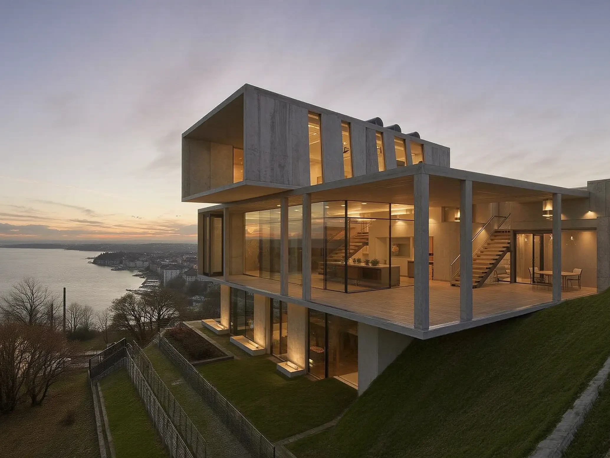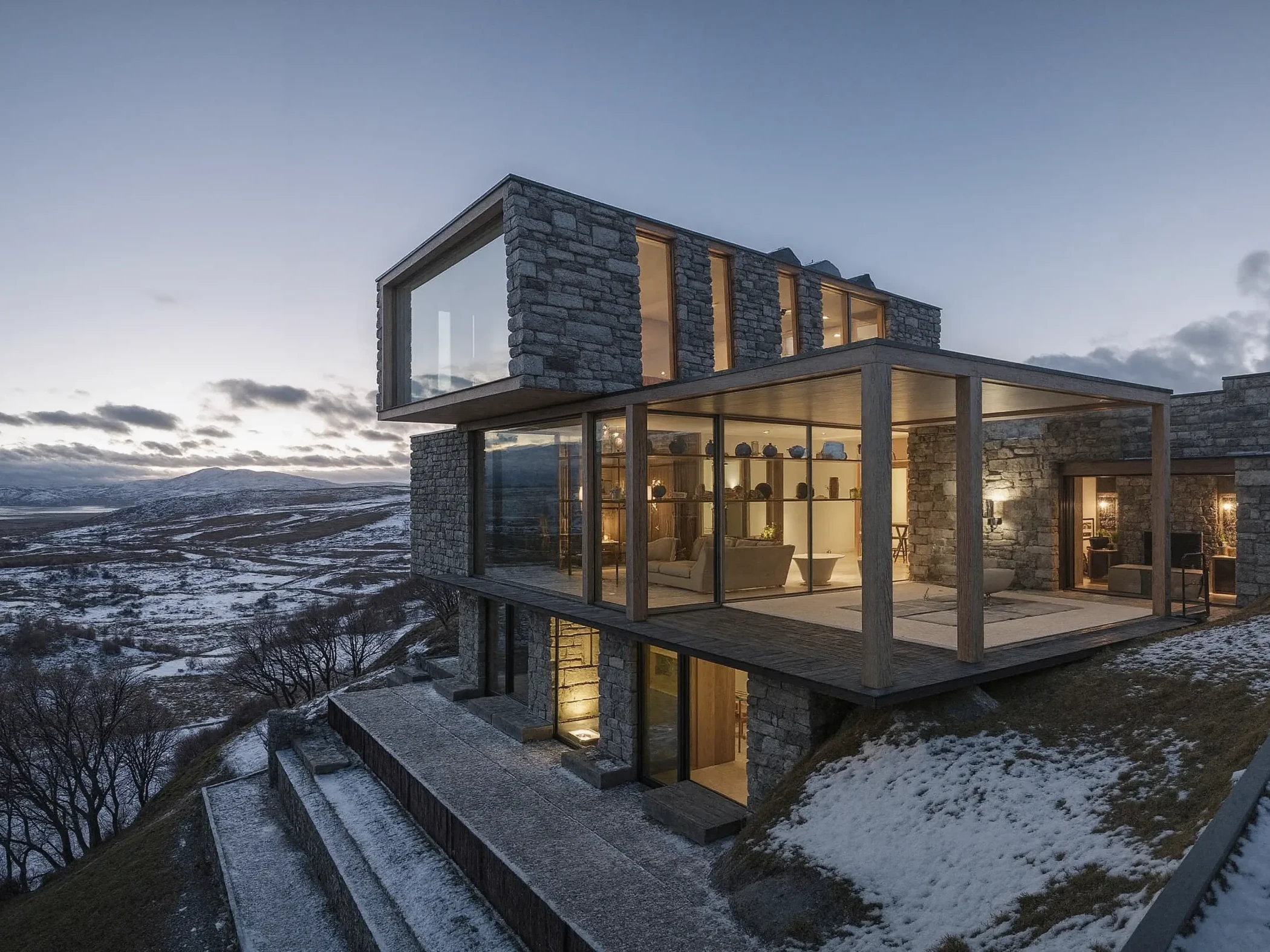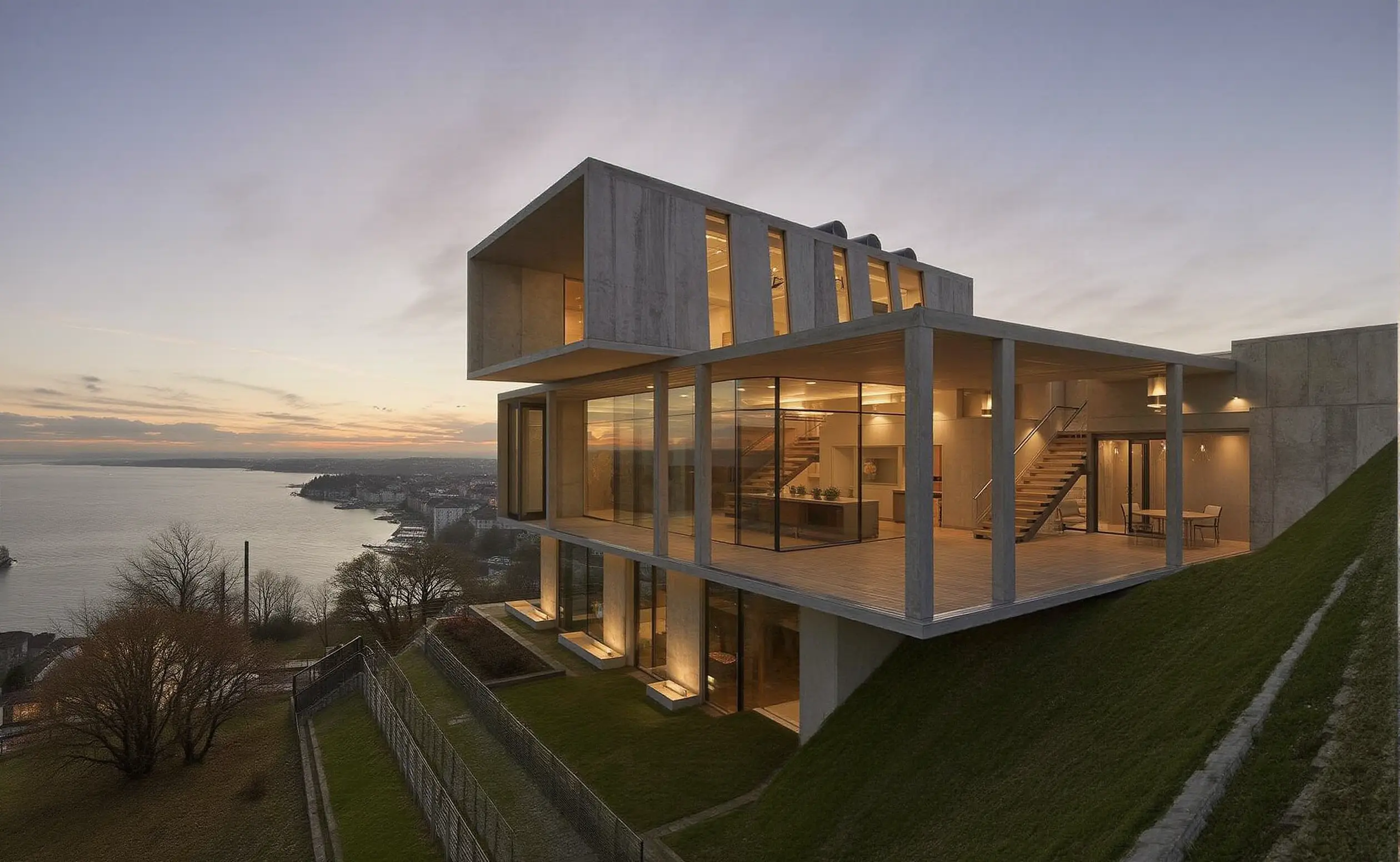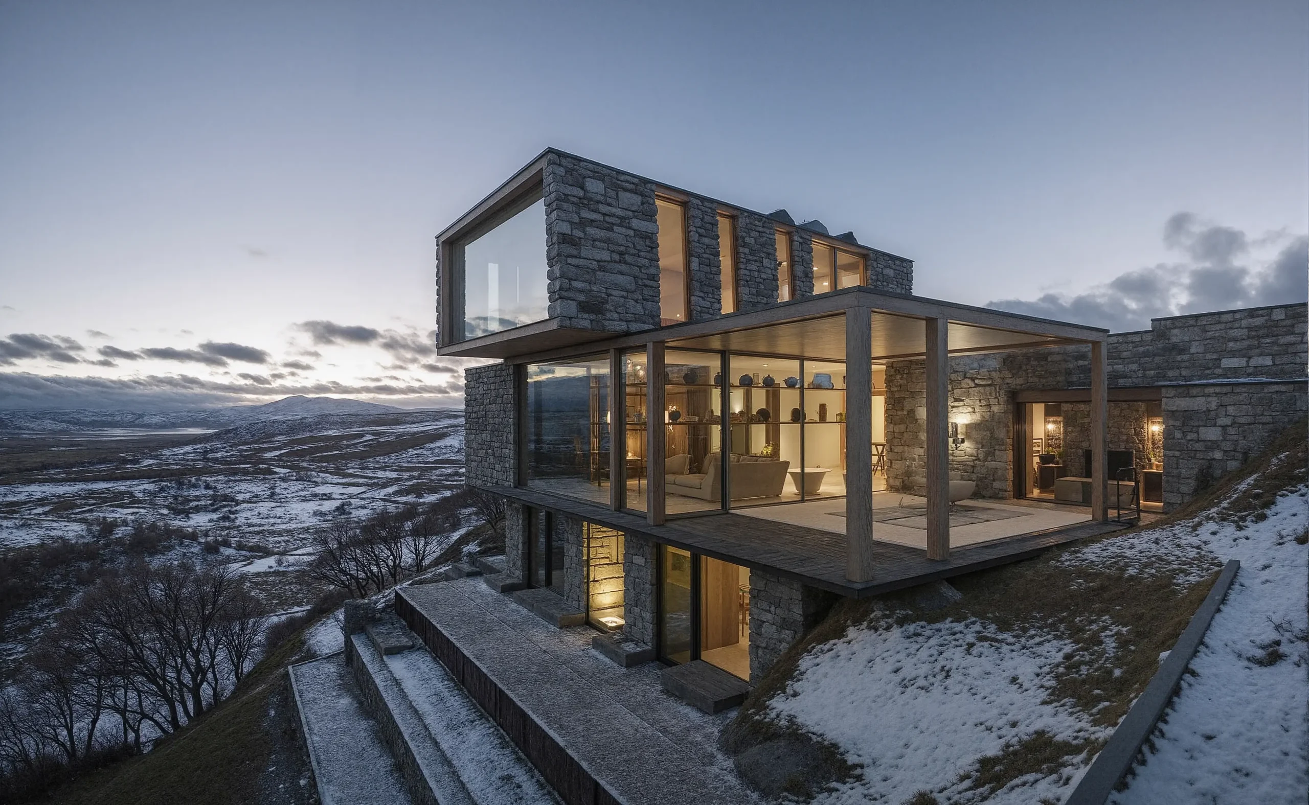 Visual studies across different moods, materials, and site contexts. Same house, different worlds.